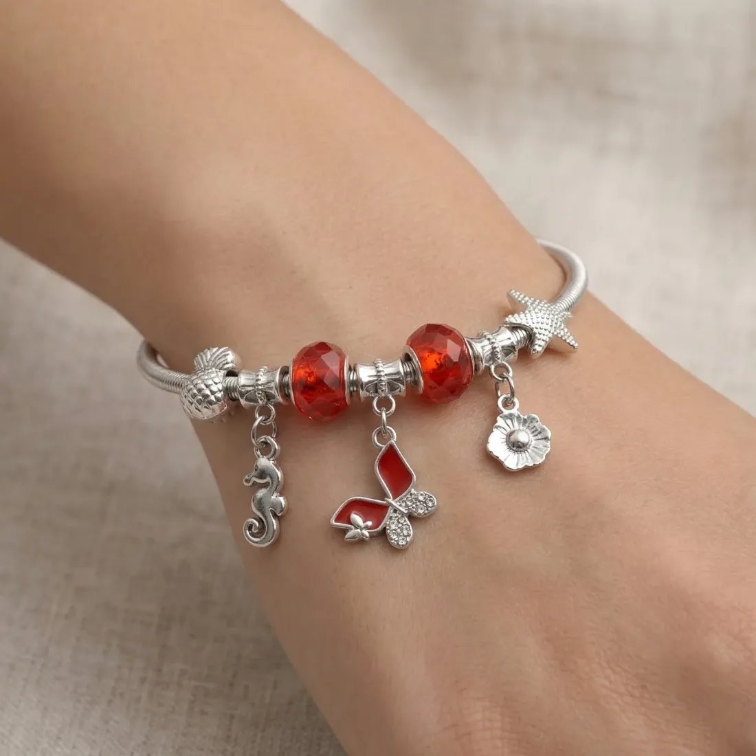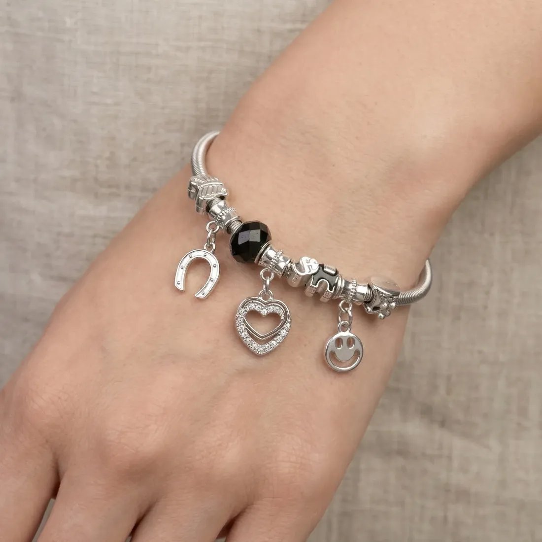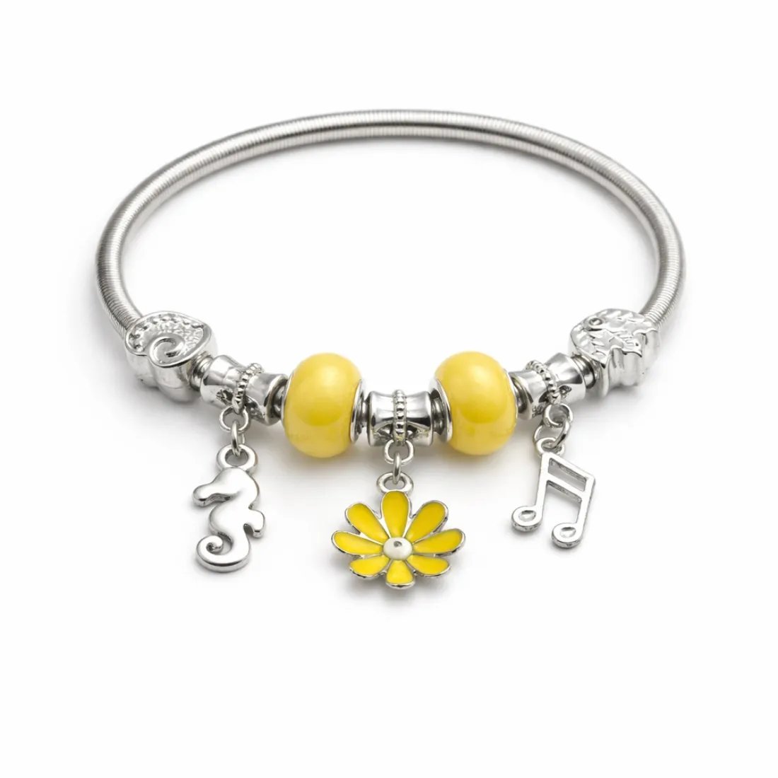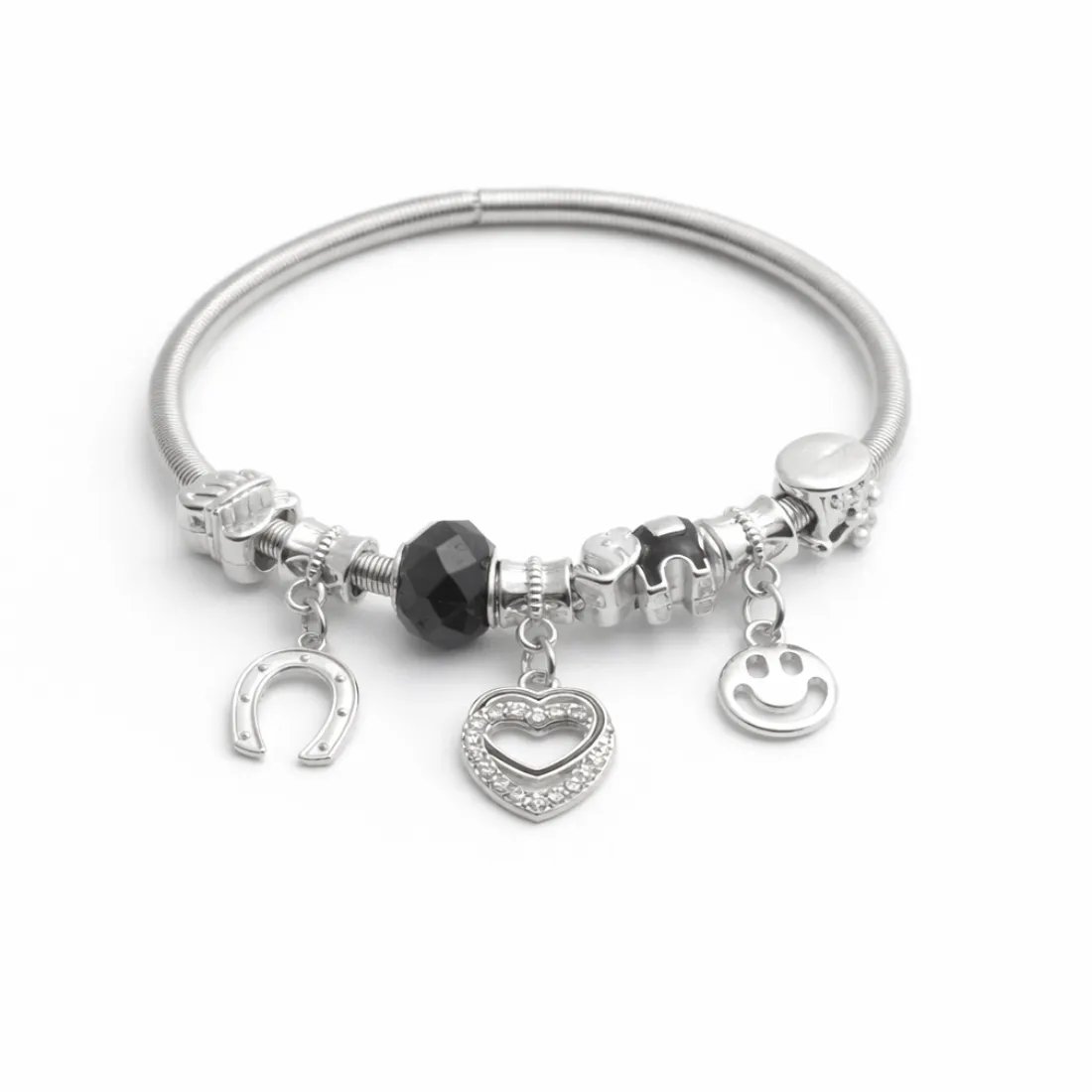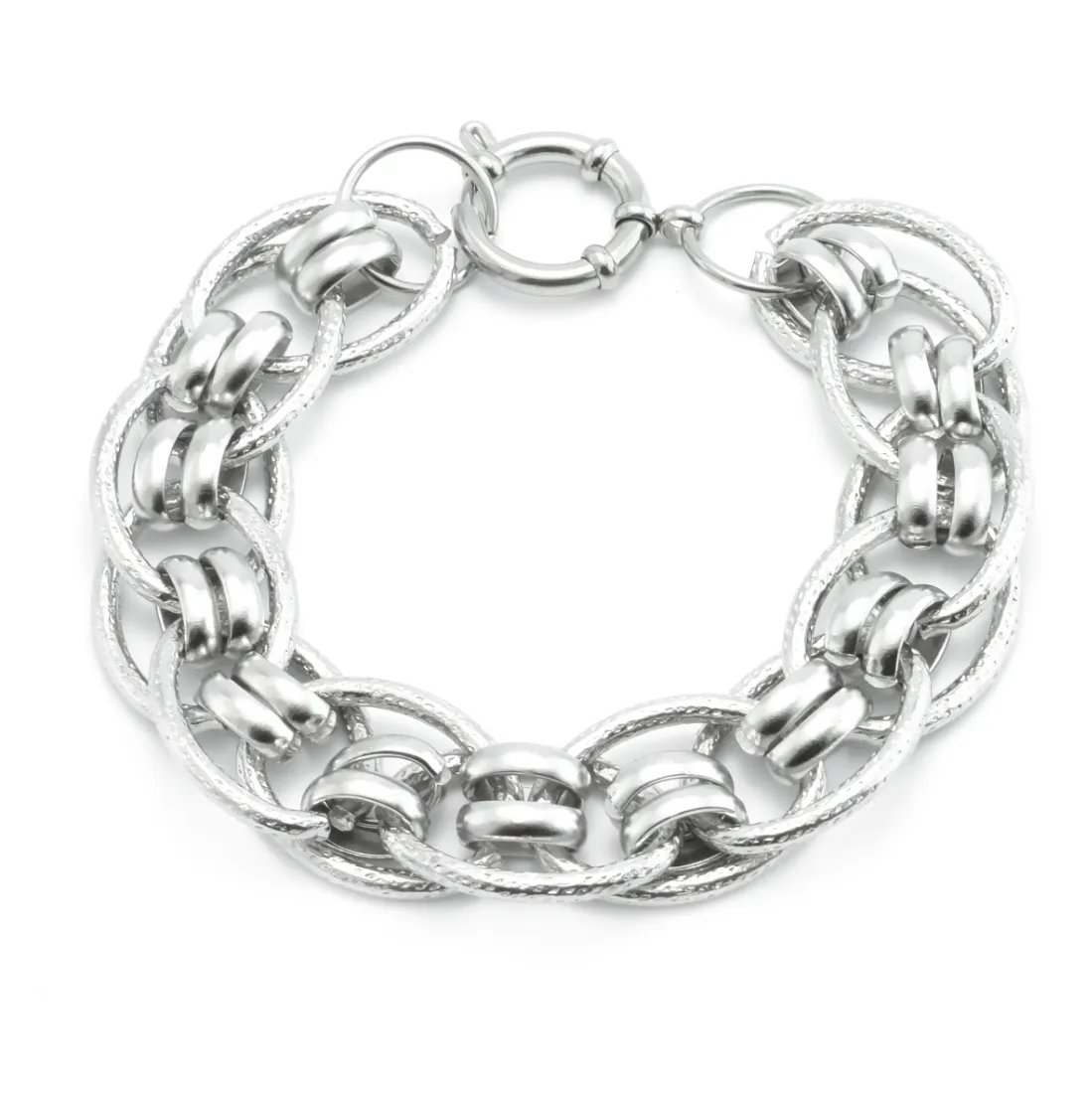 Pulsera acero quirúrgico elastizada detalles líneas centro