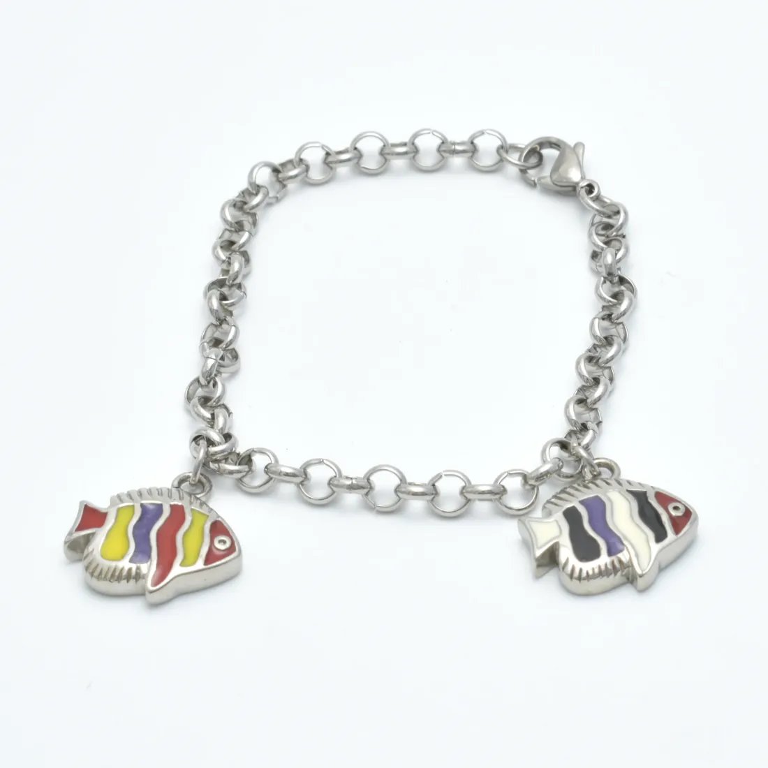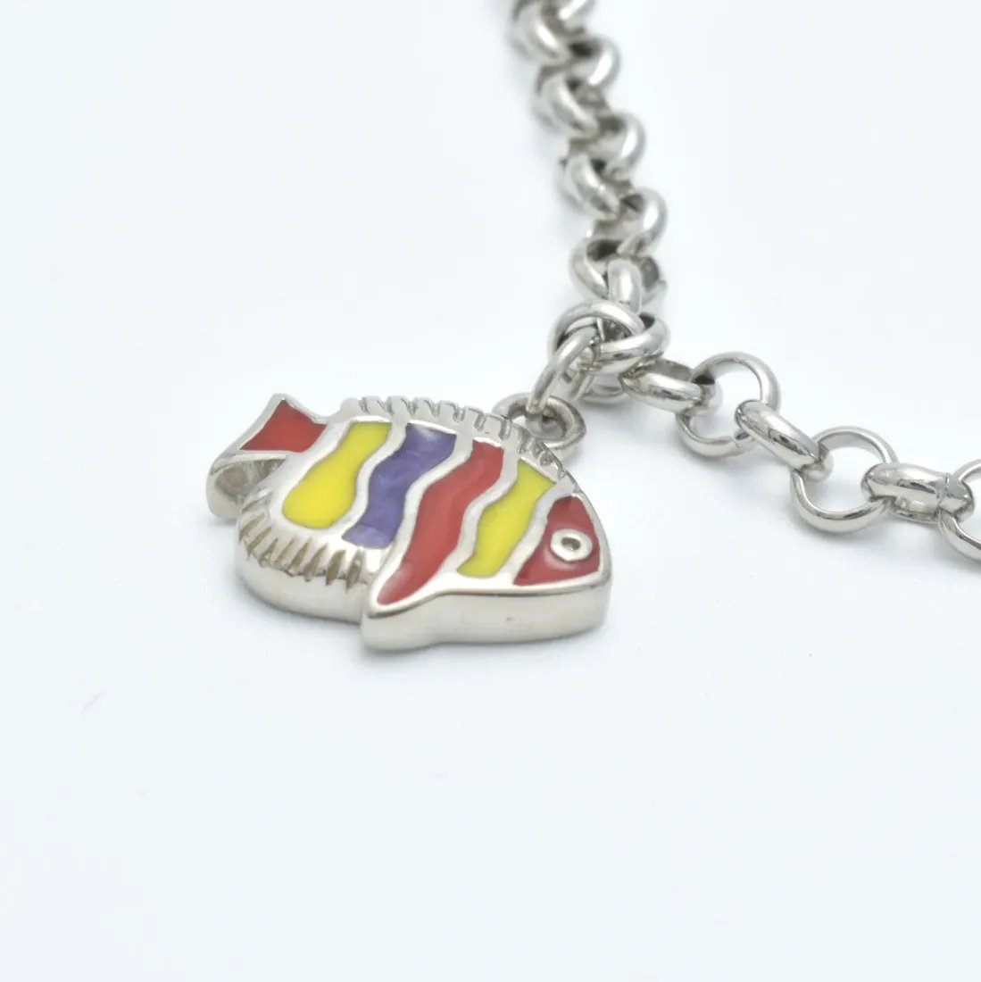 Pulsera acero quirúrgico rolo dijes peces esmalte multicolor