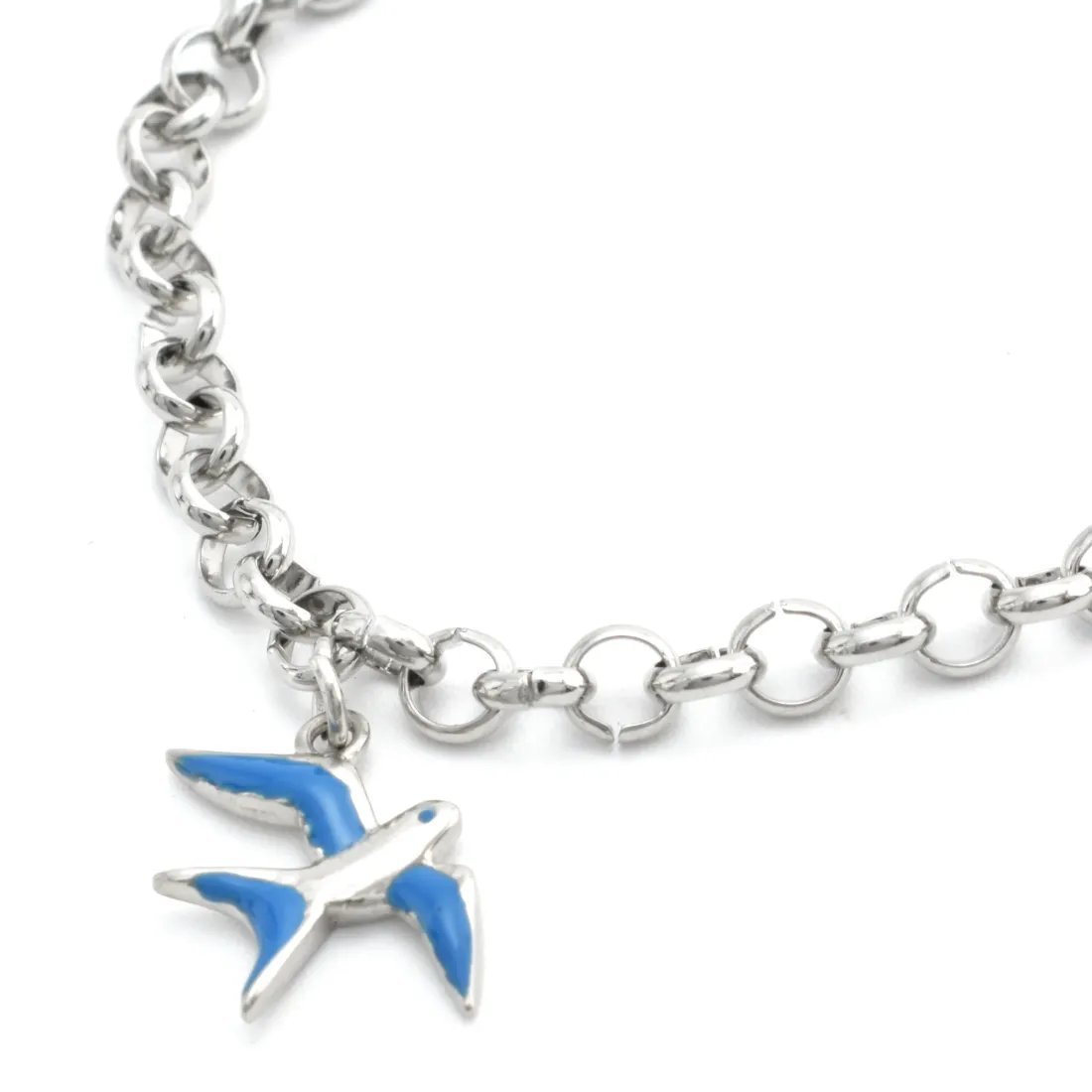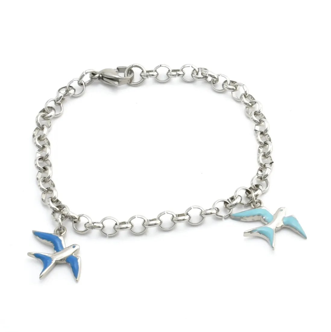 Pulsera acero quirúrgico rolo dijes aves esmalte multicolor